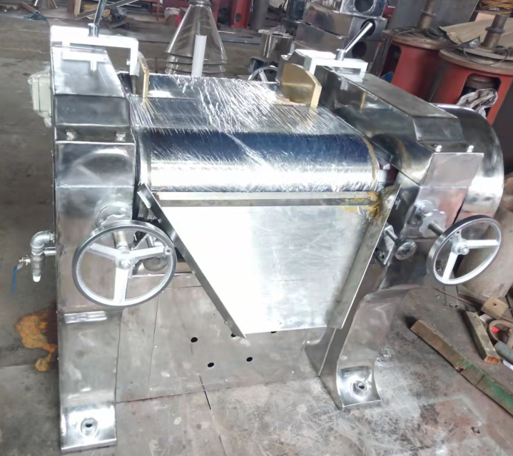 三輥研磨機是一種比較常見的針對高粘度物料的研磨設(shè)備。三輥研磨機有三根輥子,其中中間一根是固定的,兩邊的輥子可以通過手柄調(diào)節(jié)間隙,間隙越小,研磨的物料越細(xì)。工作時,電機(個別情況下還需要配減速機)通過齒輪帶動三根輥子旋轉(zhuǎn)。需要注意的是,通過齒輪的齒數(shù),三根輥子的轉(zhuǎn)速是不一樣的。物料先經(jīng)過慢輥和中間棍擠壓,再經(jīng)過中間輥和快輥擠壓。由于輥子的轉(zhuǎn)速不同且間隙非常小,物料被強力擠壓剪切,從而達(dá)到細(xì)化的目的。由于物料被剪切撕裂的時候會產(chǎn)生熱量,導(dǎo)致輥子溫度升高。輥子的材質(zhì)是冷硬合金的,在高溫的狀態(tài)下容易氧化,所以工作的時候要注意給輥子降溫。輥子的中間有一個圓孔貫穿整個輥子,降溫的時候冷卻水直接從這個圓孔中流過,帶走熱量,保證輥子不會被氧化。