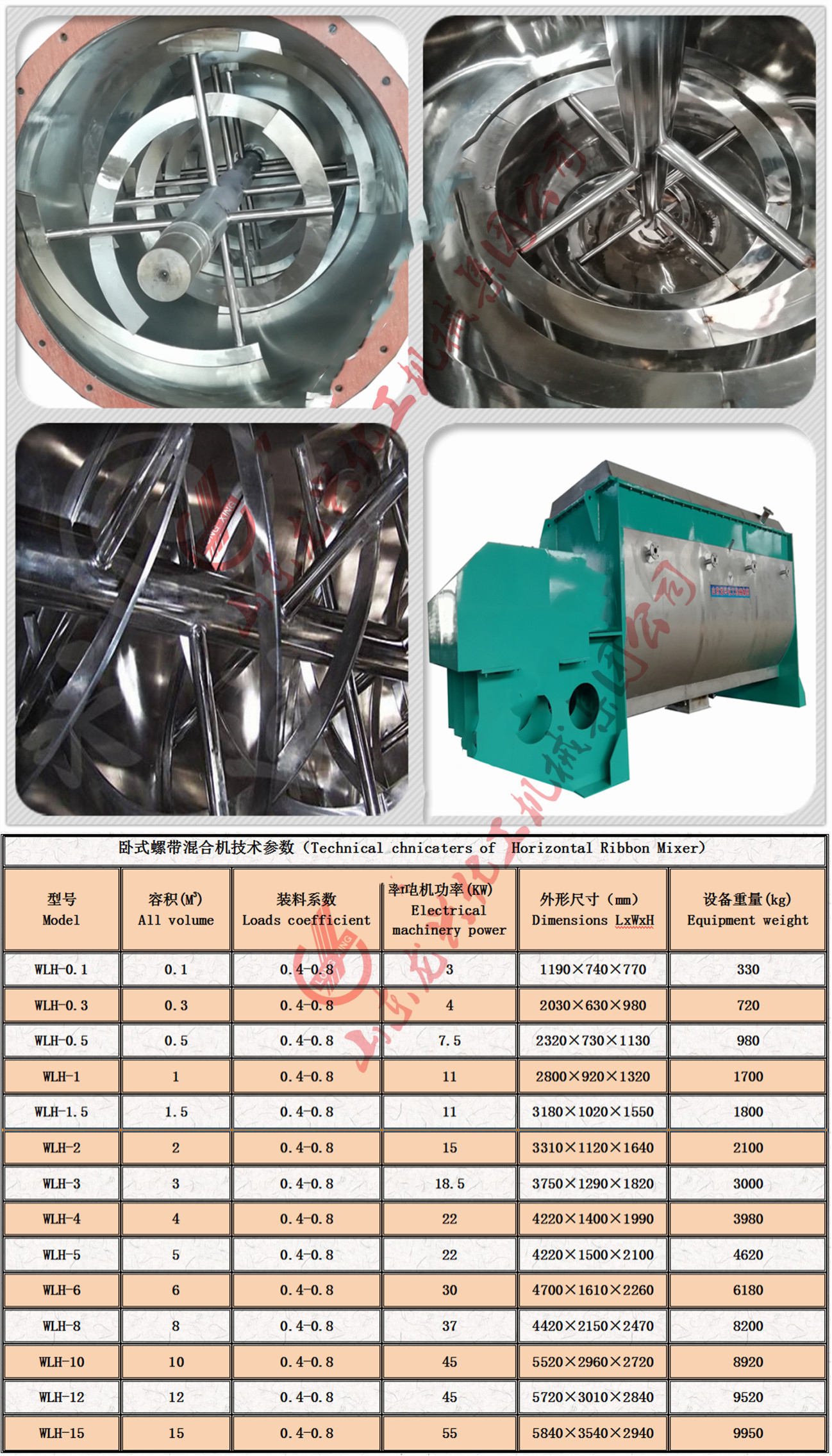 臥式螺帶混合機極大改變了傳統工藝的粉-粉、粉-液、固體物料、顆粒狀物料的混合狀況,使粉一粉、粉一液、固體物料、顆粒狀物料的混合向高速、高效、易操作清洗方便,無污染方面發展,標志著現代工藝的顯著進步,廣泛應用于醫藥、食品(比如奶茶、速溶茶粉、食品添加劑、香精香料、調味品、大豆分離蛋白質噴涂卵磷脂等混合工藝)、獸藥、變性淀粉、造紙、化工、飼料、CPE塑料粒子等行業之中,它特有的機身及結構注定了與眾不同的特性。對纖維含量較大、密度差異大的物料混合,該混合機不適合。膩子膏、真石漆、生物、醫藥、食品等行業,建議使用不銹鋼材質。一般情況下,混合含有玻化微珠的干粉砂漿料,推薦臥式螺帶混合機快。電機與攪拌主軸之間通過擺線針輪式減速機直聯,結構簡單,運行可靠度高,維護方便。