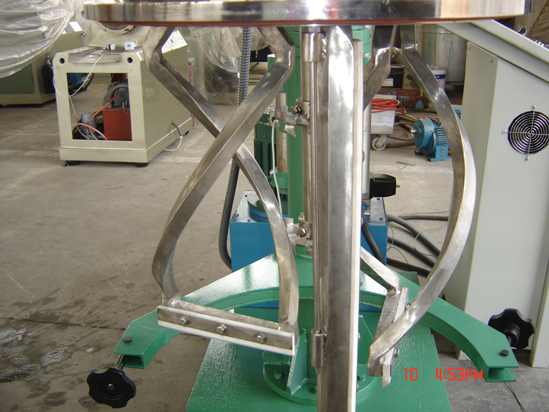 雙行星動力混合機內有三根不同形式的攪拌器,其中一個攪拌器在繞釜體軸線轉動,其余兩個攪拌裝置又以不同的轉速繞自身軸線高速自轉,使物料在釜內作復雜的運動,受到強烈的剪切和搓合。設備內有“山”形刮底刮壁刀繞釜體軸線轉動,將粘在壁上和底部的原料刮出參與混合,使其效果更為理想。設備密封性好,可抽真空,具有良好的排氣除泡效果。設備缸蓋可液壓升降,缸體可自由移動,操作十分方便。攪拌器的形式,根據物料要求可為多層槳葉式、框式、蝴蝶式、外輪式等。